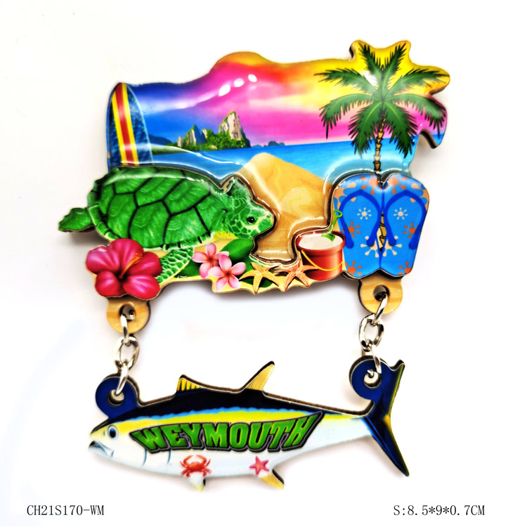 Magnet de frigider cu suveniruri cu design mediteranean personalizabil 3D. Dispune de un stil de formă unică cu lanț atașat, perfect pentru turismul pe plajă. Fabricat cu materiale de înaltă calitate și suport magnetic puternic, oferă atât farmec decorativ, cât și funcționalitate practică pentru orice suprafață magnetică.