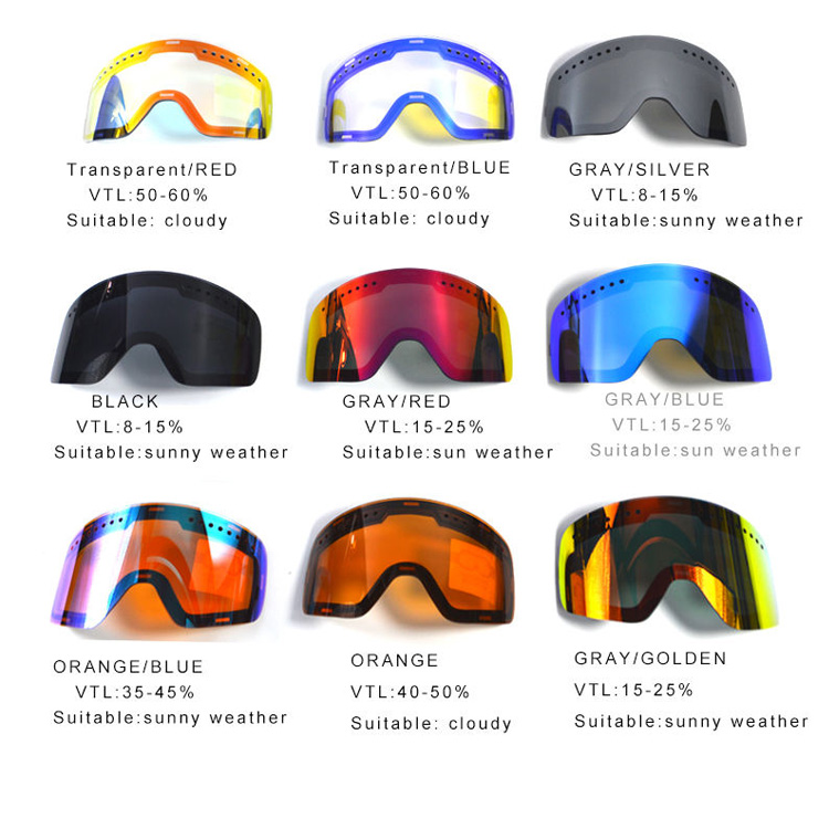 Anti-aburire magnetică personalizată UV 400 Ochelari de schi eleganti pe zăpadă. Soluția ta de vânzare cu ridicata pentru sporturile profesionale de iarnă. Acești ochelari de schi au lentile anti-aburire în oglindă cu protecție magnetică personalizată UV400. Designul elegant cu două straturi asigură o claritate și confort de neegalat pentru toate aventurile de schi pe zăpadă.