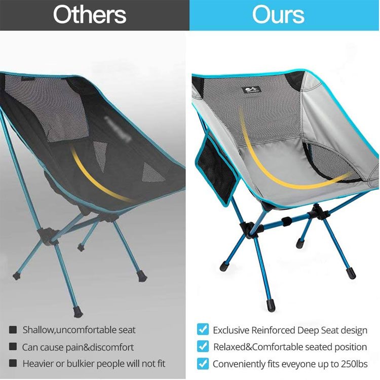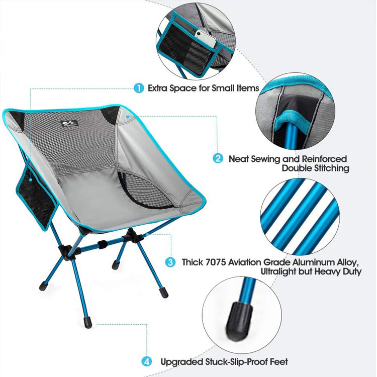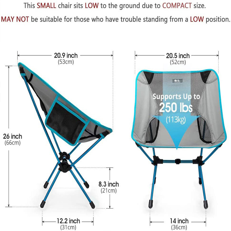 ✅Ultra-ușoară și prietenoasă pentru călătorii –Alinați-vă oriunde! Acest scaun pliant portabil este conceput pentru a fi incredibil de ușor, făcându-l însoțitorul perfect pentru camping, drumeții, călătorii cu rucsac sau excursii pe plajă. Ușor de transportat fără a adăuga volum.