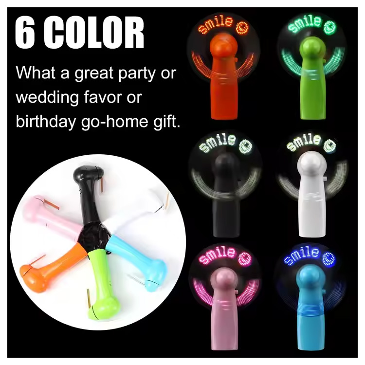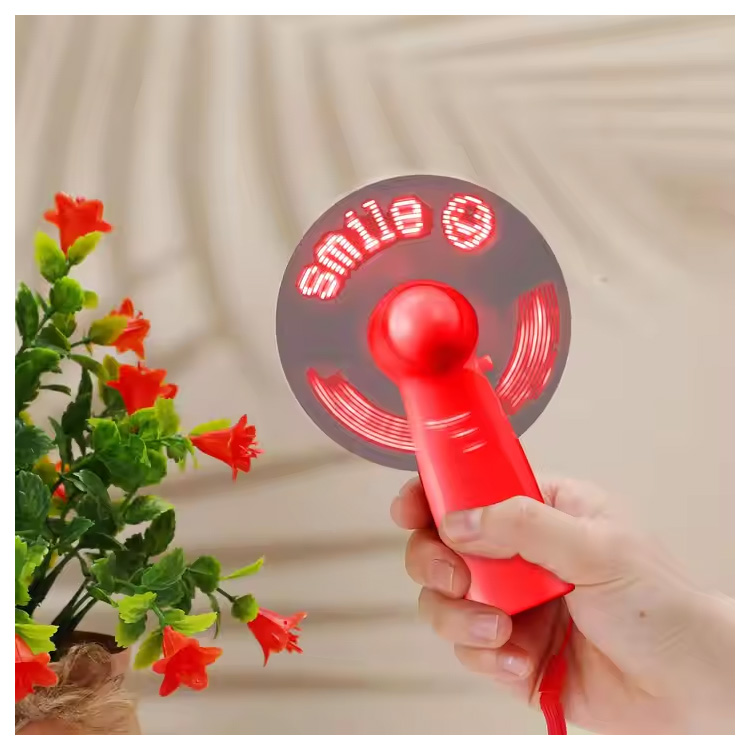 Nou mini ventilator portabil cu LED pentru mesaj personalizat. Ventilator portabil pentru mesaje cu LED— Compact, alimentat de baterii și personalizabil cu text derulat. Oferă o briză rece în timp ce vă afișați marca sau mesajul în lumini LED strălucitoare. Perfect pentru evenimente, petreceri sau cadouri promoționale.