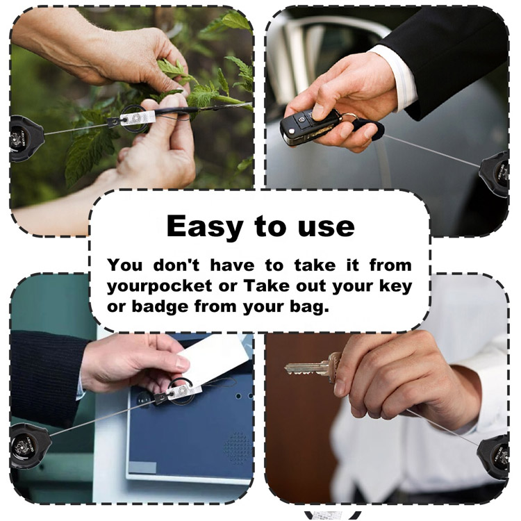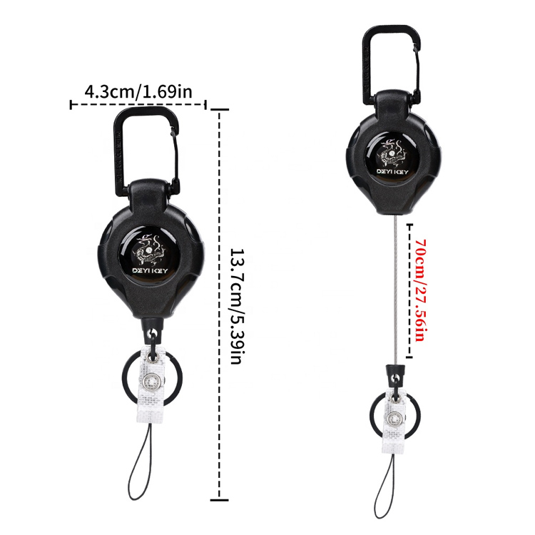 Dispune de o frânghie durabilă de nailon de 80 cm cu mecanism retractabil neted care permite extensia confortabilă, prevenind în același timp încurcarea, menținând cheile în siguranță și accesibile în timpul activităților în aer liber.