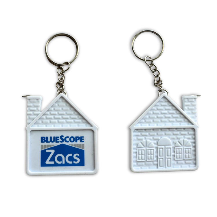 Având o siluetă unică de casă, acest breloc captează instantaneu atenția în timp ce transmite un concept cald de „acasă” – perfect pentru industriile imobiliare, construcții și decor ca un cadou promoțional.