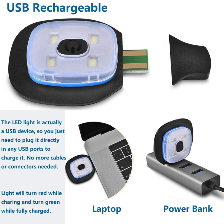 Lampă frontală cu LED-uri, reîncărcabilă, fără mâini