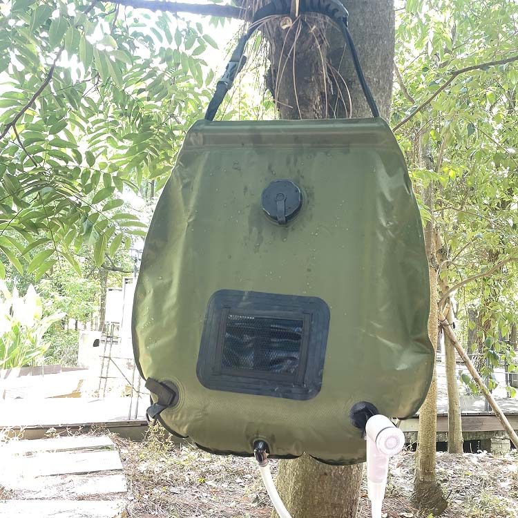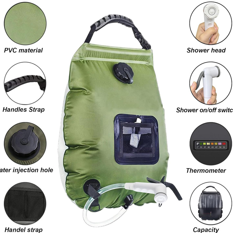 Duș portabil solar, încălzire pentru camping, geantă de duș pentru camping. Soluția ta de igienă portabilă supremă pentru aventurile în aer liber. Acest sac de duș solar oferă 5 galoane/20L de apă de încălzire pentru confortul campingului. Valorificând energia solară, asigură o experiență de duș caldă și răcoritoare oriunde în sălbăticie.