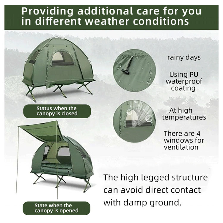 Cort unic ultra-ușor pentru camping în aer liber Oxford impermeabil. Adăpostul dvs. suprem de familie pentru aventuri în aer liber. Acest cort unic ultra-ușor combină țesătura Oxford impermeabilă cu tehnologia avansată rezistentă la ploaie. Patul pliabil integrat, rezistent la umiditate, asigură confort și protecție completă în timpul excursiilor în camping.