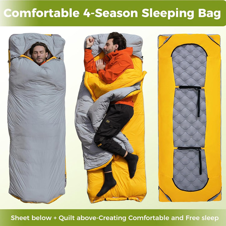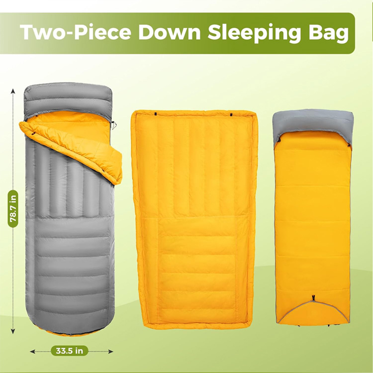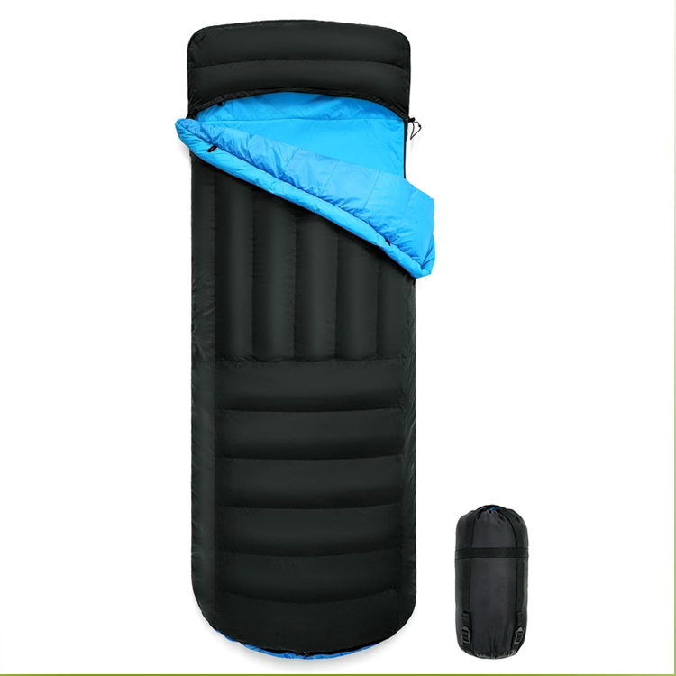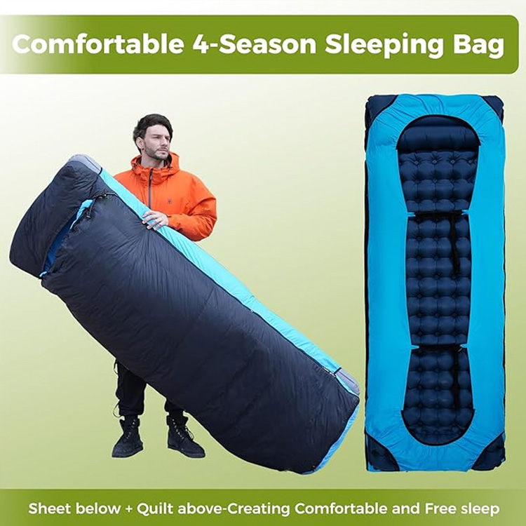 Pătură de camping ultraușoară din puf Pad de dormit din puf de rață. Sistemul tău de somn suprem în patru anotimpuri pentru aventuri în sălbăticie. Acest sac de dormit ultraușor din puf combină izolația premium din puf de rață cu o pernă gonflabilă integrată. Funcționând atât ca Topquilt, cât și ca sac de dormit, oferă căldură maximă fără a compromite greutatea.